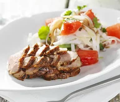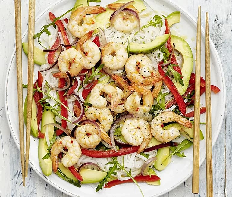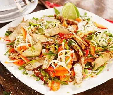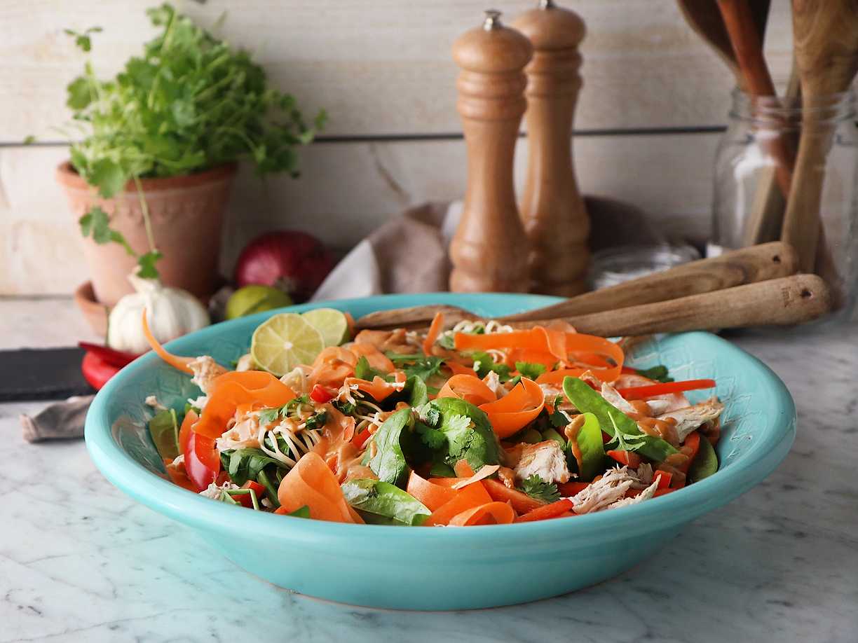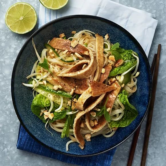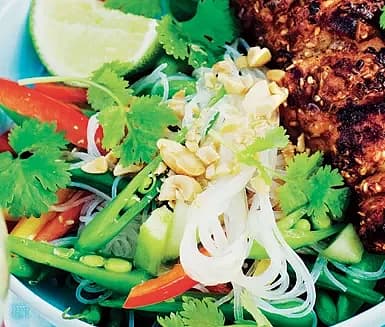 Kycklingspett med nudelsallad och krämig sesamdressing