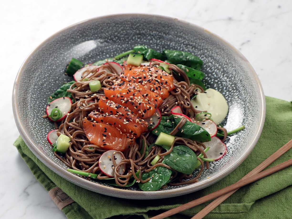 Ingefärsgravad lax med nudelsallad och wasabimajonnäs