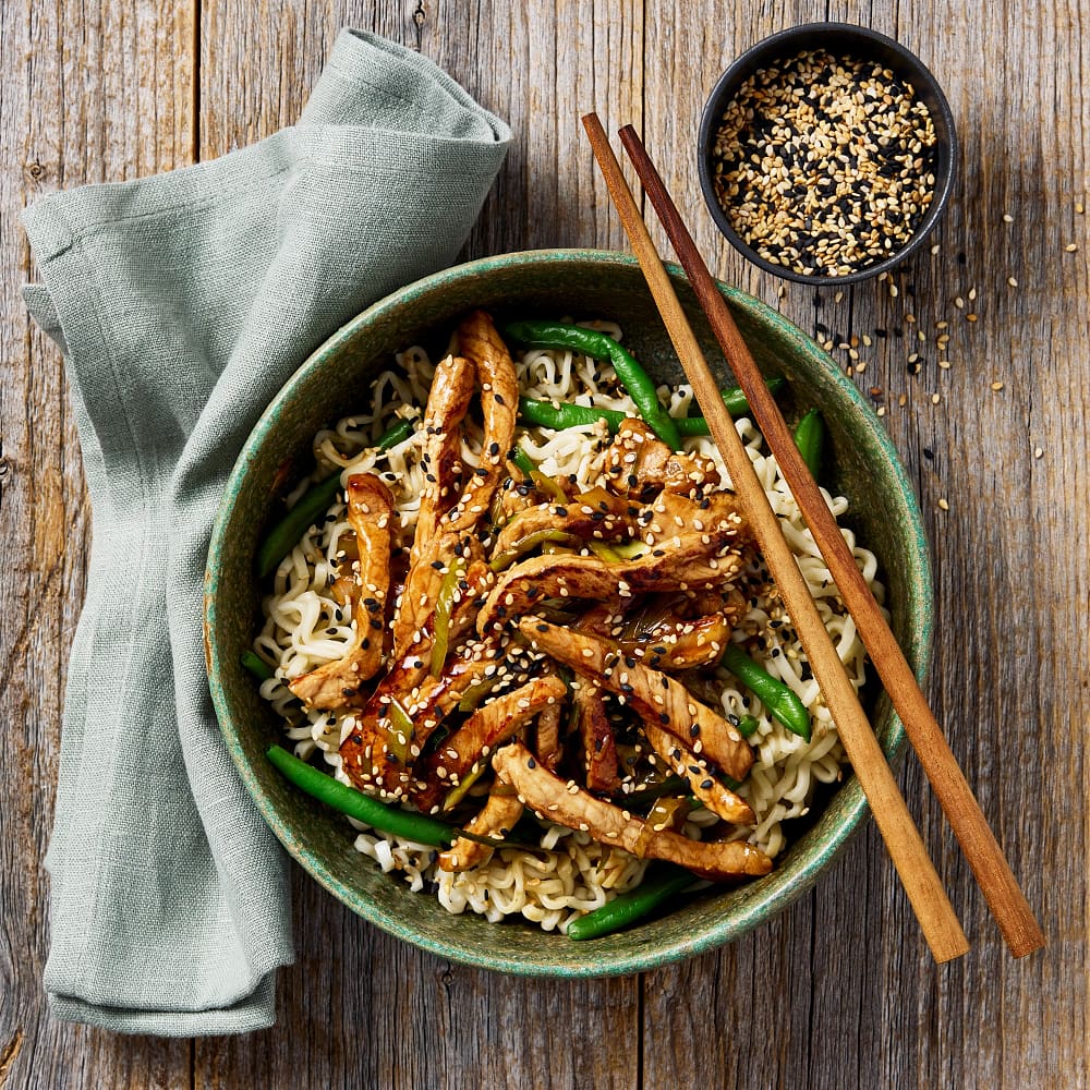 Nudelwok med lövbiff och sesam
