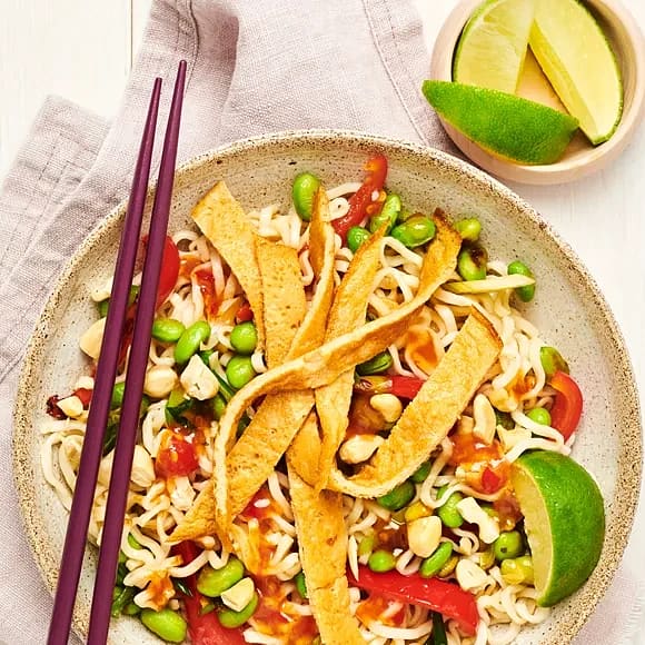Nudelwok med paneer, shiitake och koriander