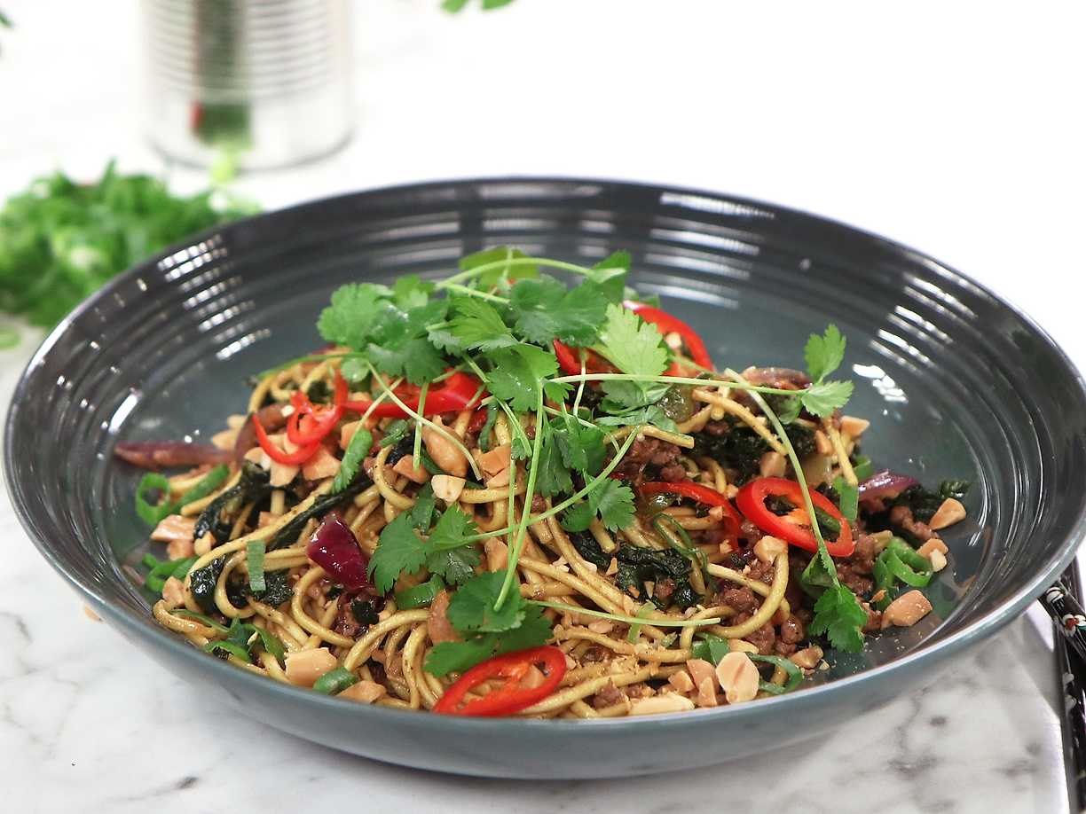Nudelwok med kryddig kalkonfärs