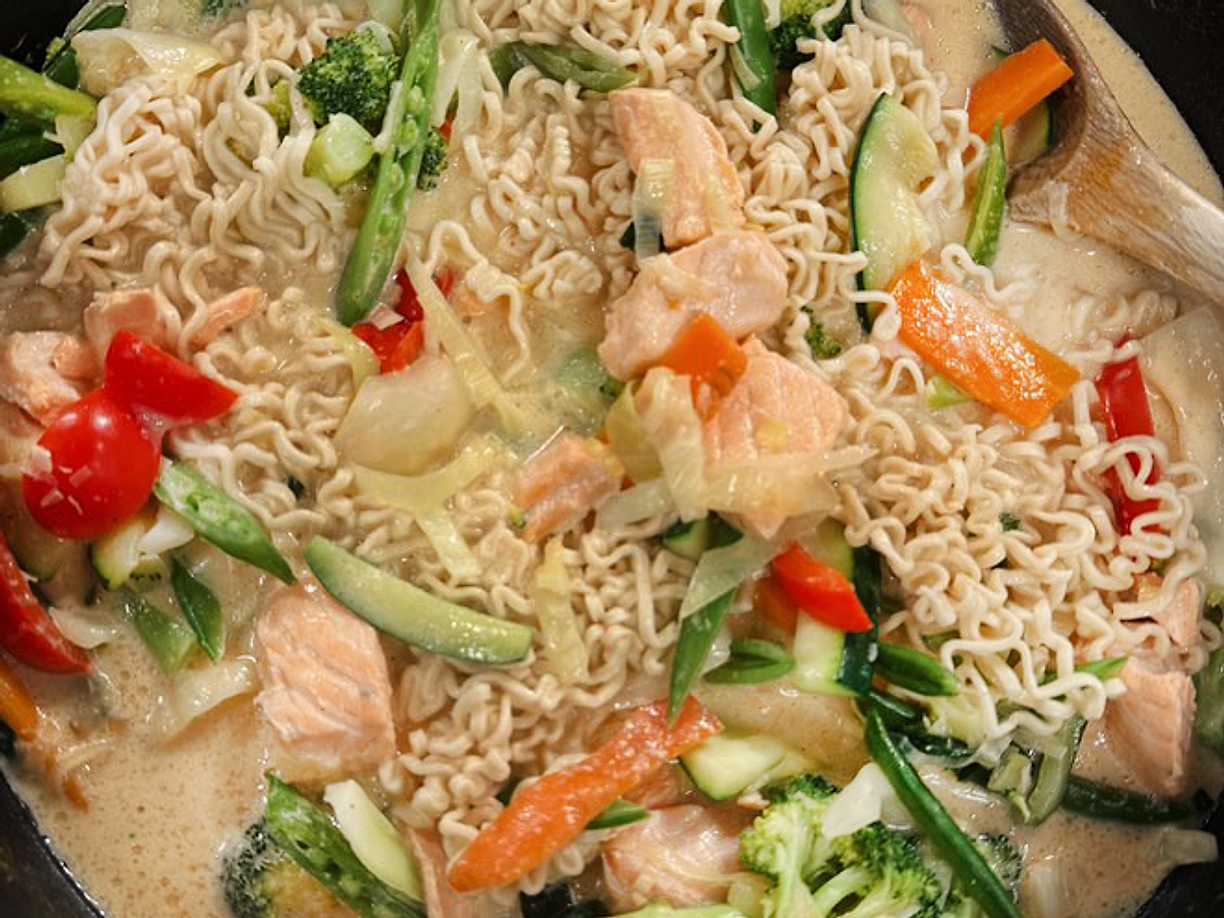 Ugnsbakad lax med nudelwok