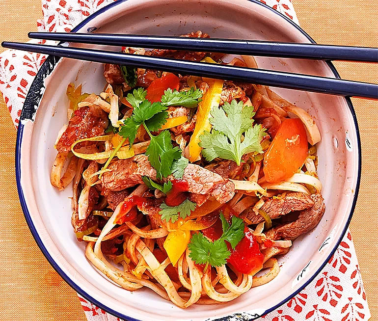 Fläskfilé med nudelwok