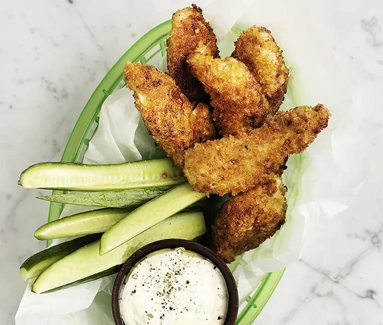 LCHF-chicken nuggets med gröna pommes och BBQ-majo