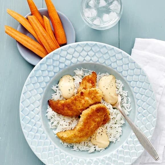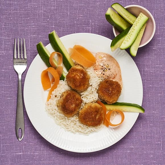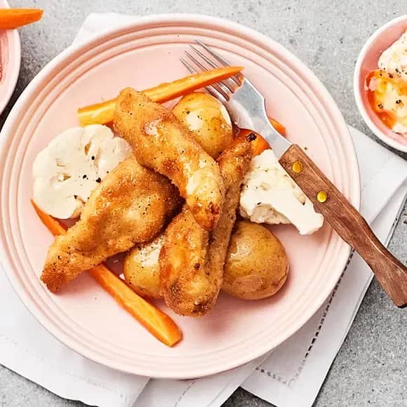 Chicken nuggets med rostade rotfrukter och dragondipp