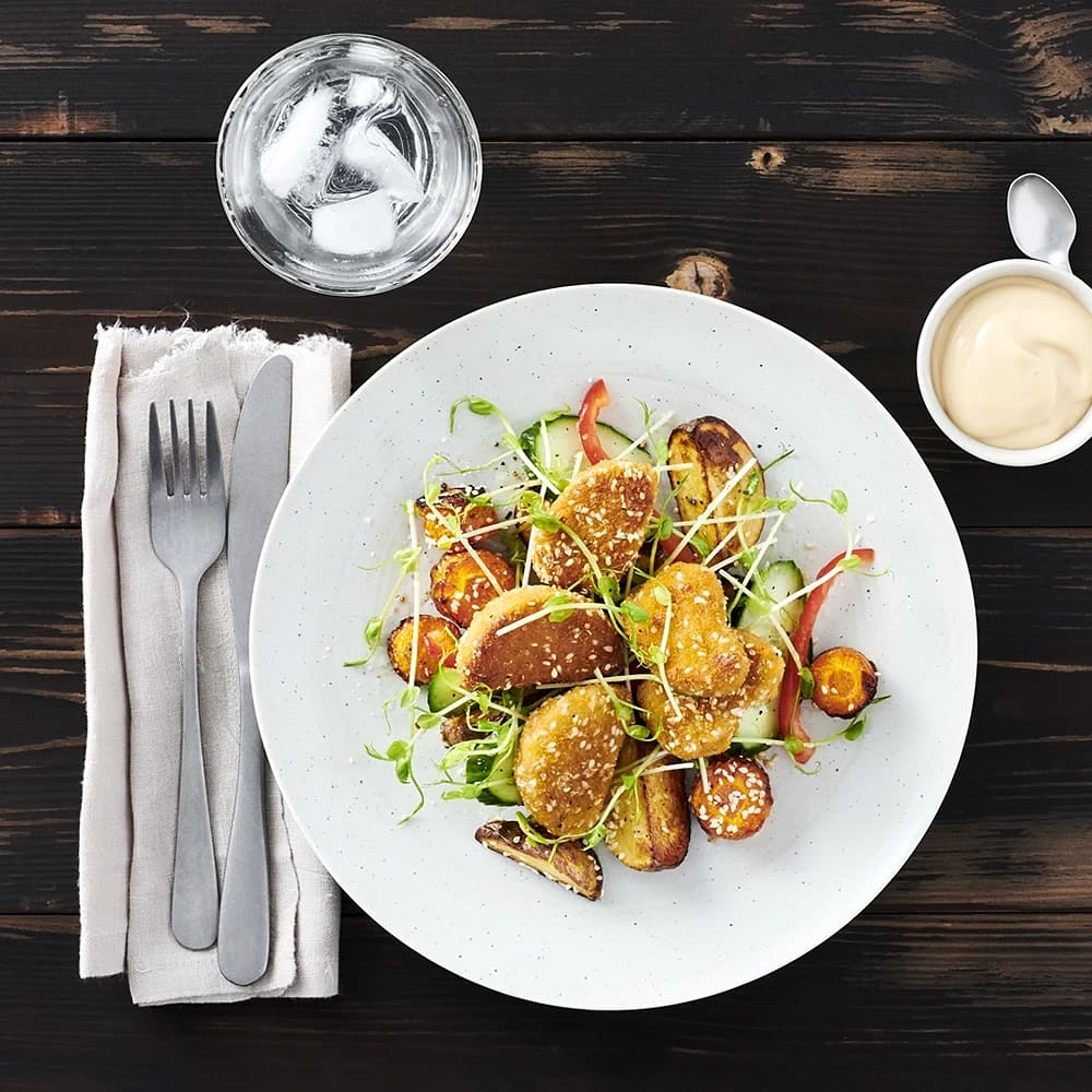 Krispiga Soja Nuggets med grillade grönsaker och sallad