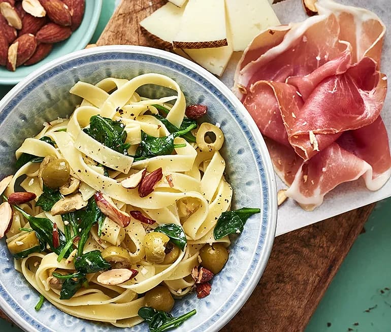 Oliv- och citronpasta med serranoskinka
