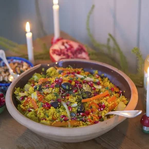 Saffranscouscous med fänkål och svarta oliver