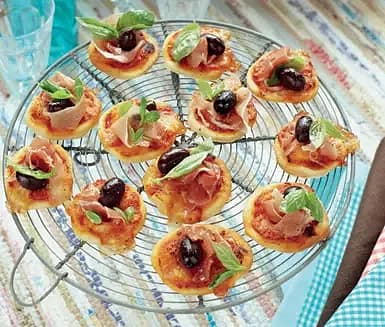 Blyga oliver - smördegsknyten med getost, oliver och lufttorkad skinka