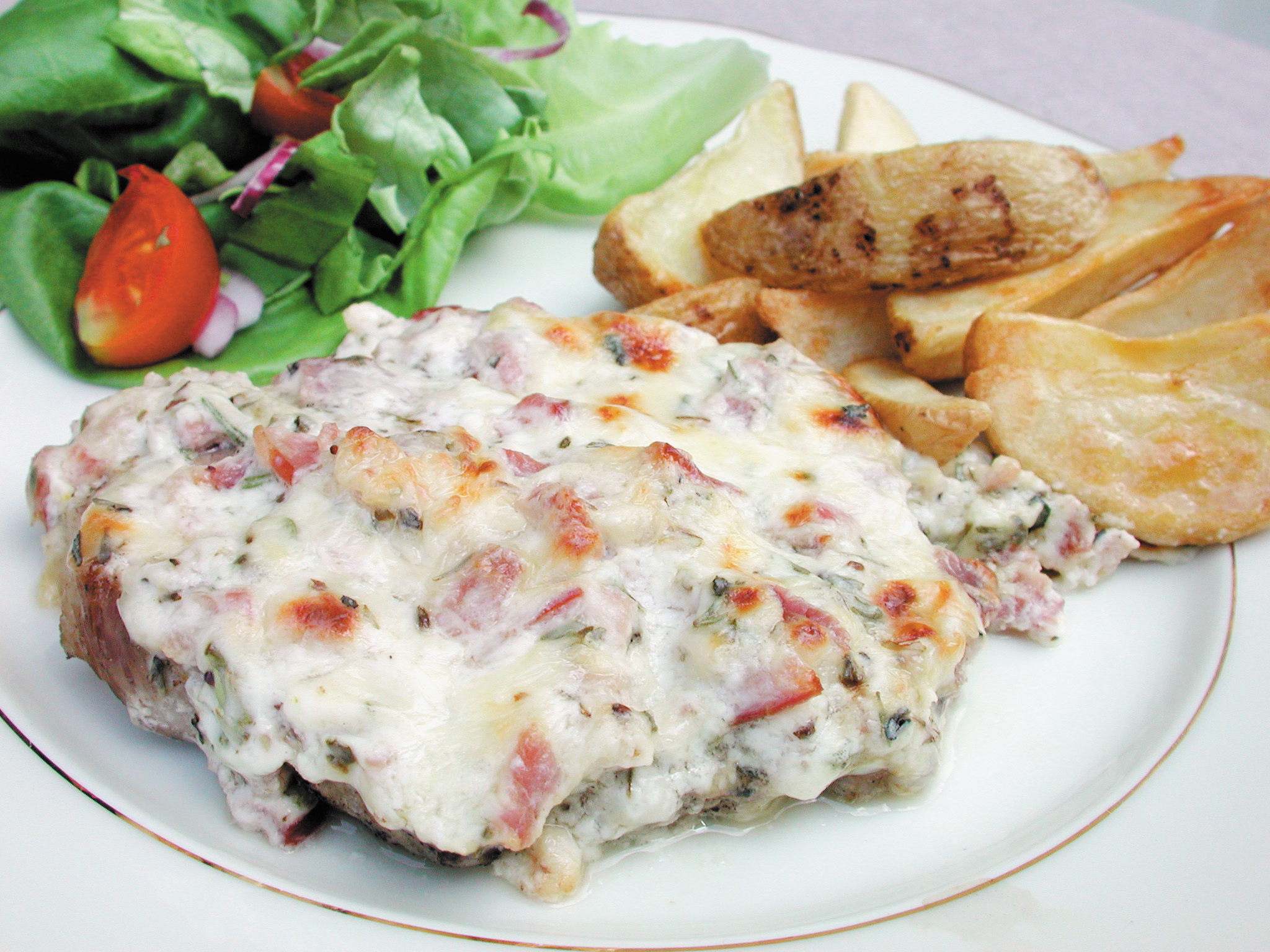Ört- och skinkgratinerade kotlettmedaljonger