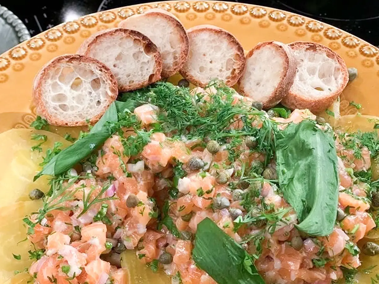Laxtartar med örter och gulbeta
