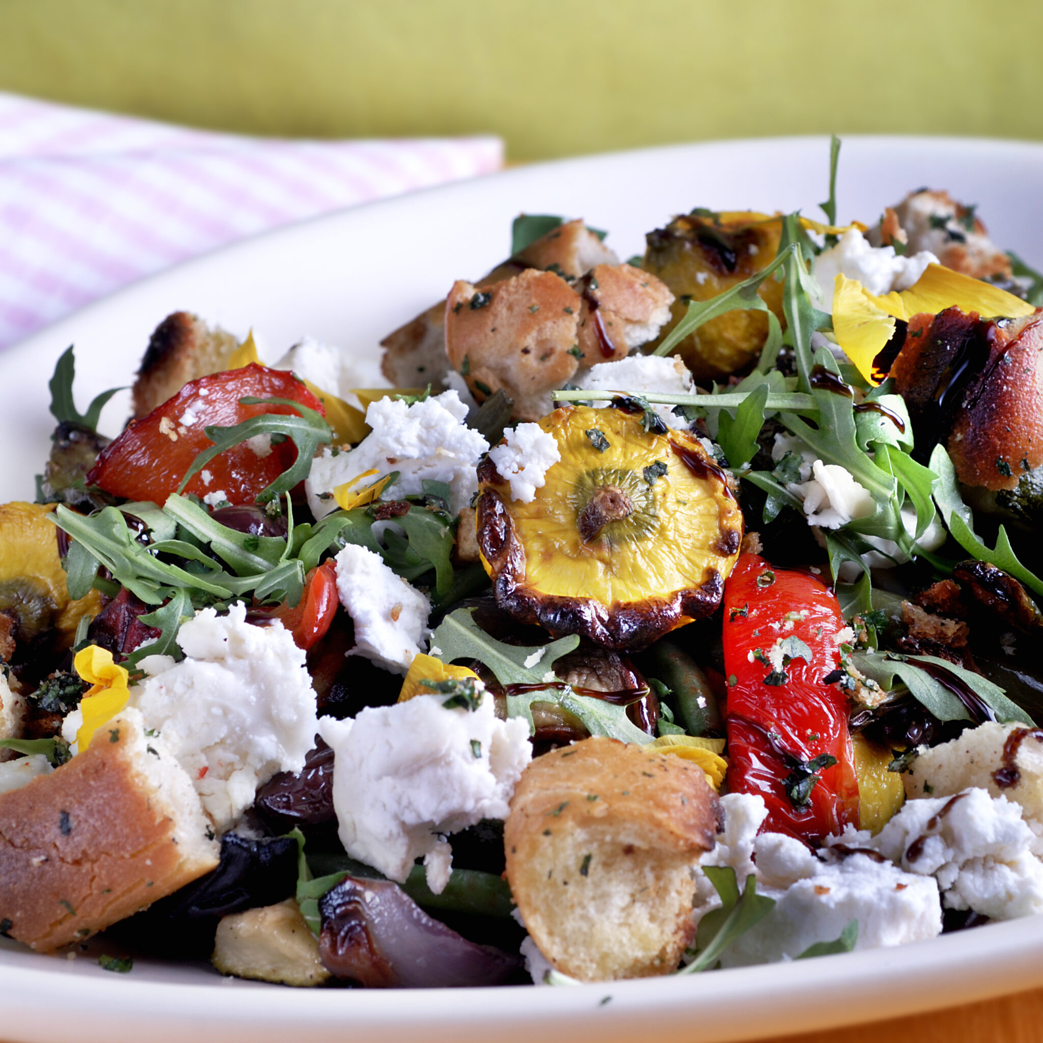 Ekogrönsaker med örtkrutonger och chèvre