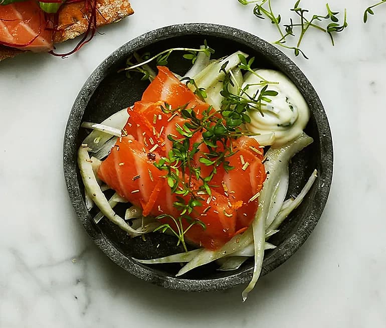 Snabbgravad apelsinlax med örtmajonnäs