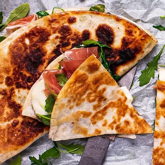 Piadina med ost och skinka
