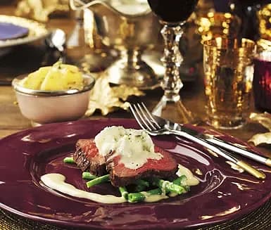 Helstekt oxfilé med hasselbackspotatis och gräddig rödvinssås