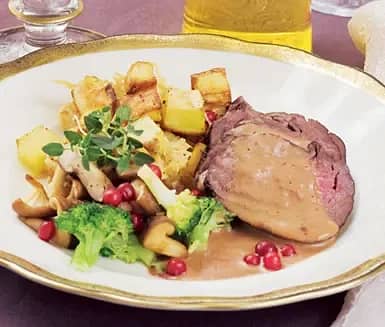 Smörstekt oxfilé med potatisgratäng och portvinssås