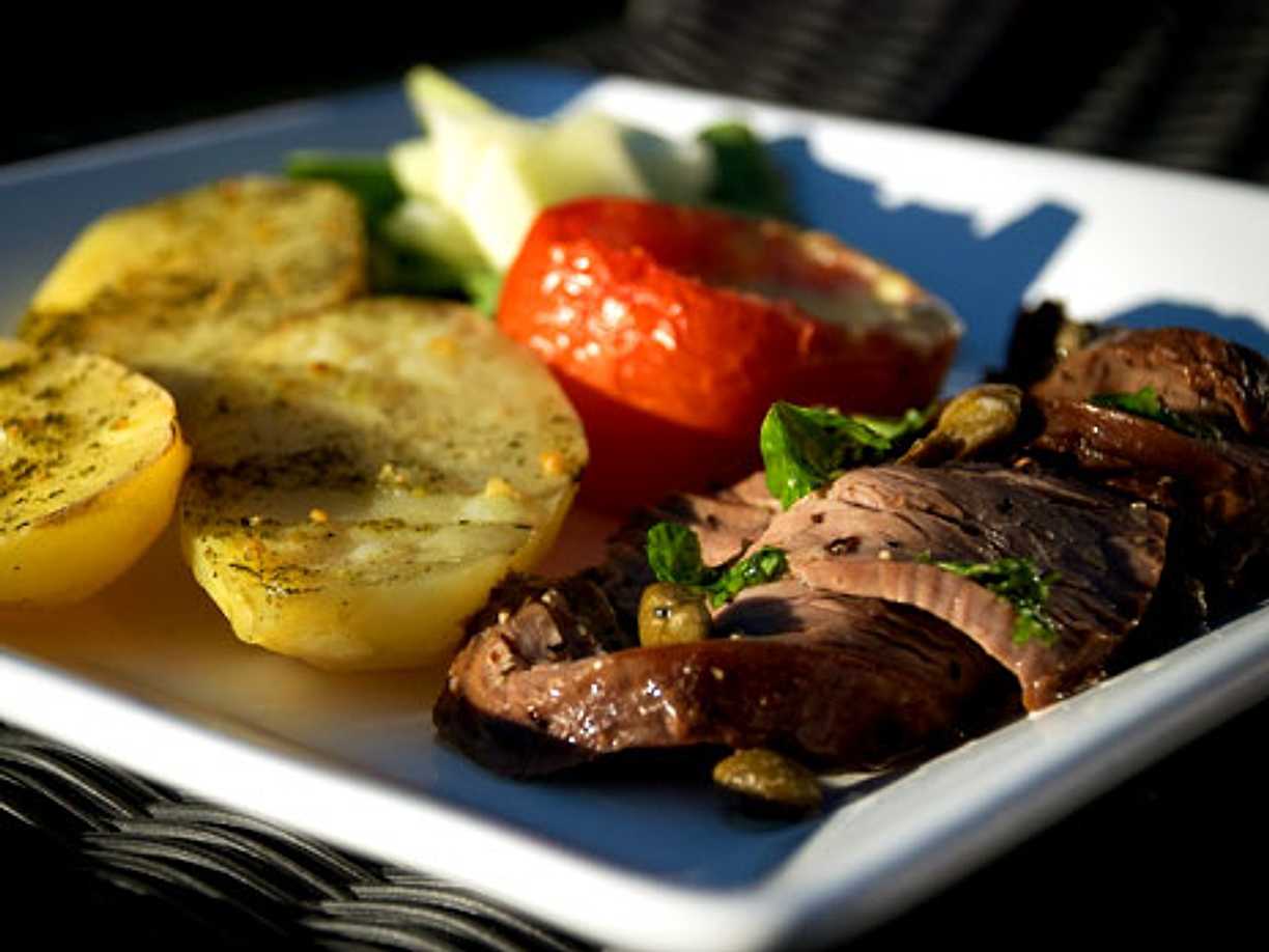Oxfilé provencale med rödvinsås och fetaostsallad