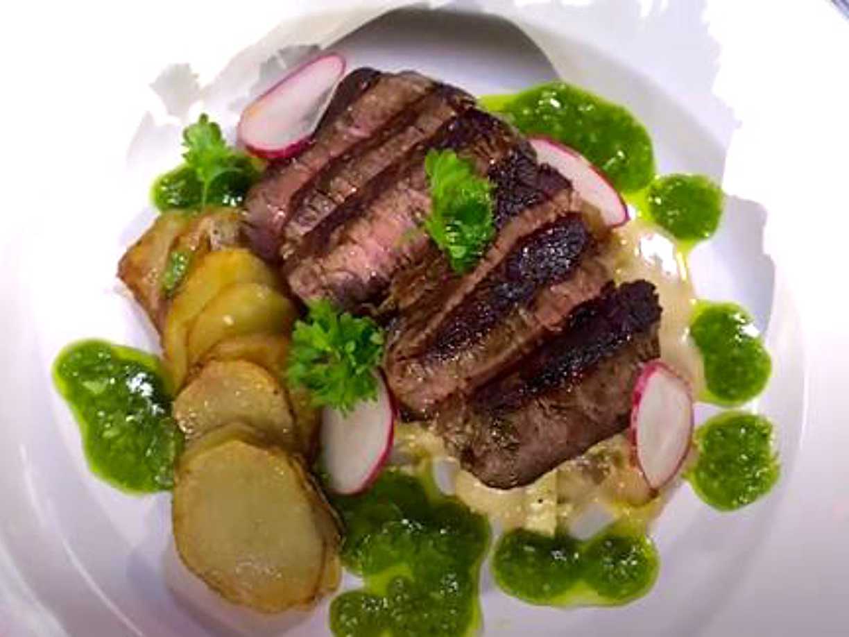 Oxfilé sous vide med potatisgratäng och tomatsalsa
