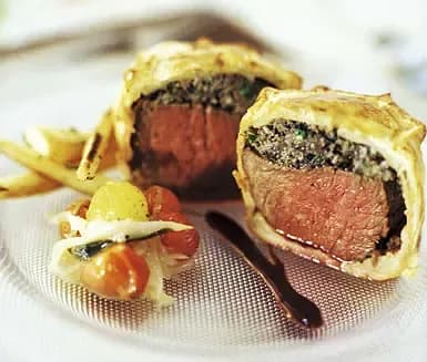 Oxfilé, fläskfiléspäckad, med potatiskroketter