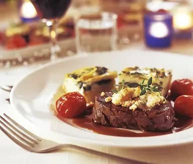 Festlig oxfilé med potatisgratäng och rödvinssås