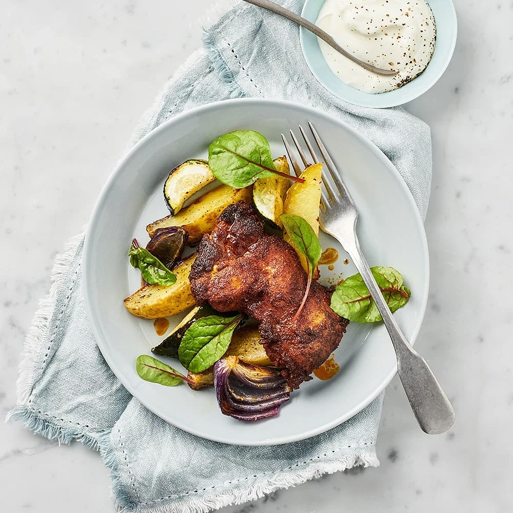 Allt på en plåt med tandoorikyckling och yoghurt