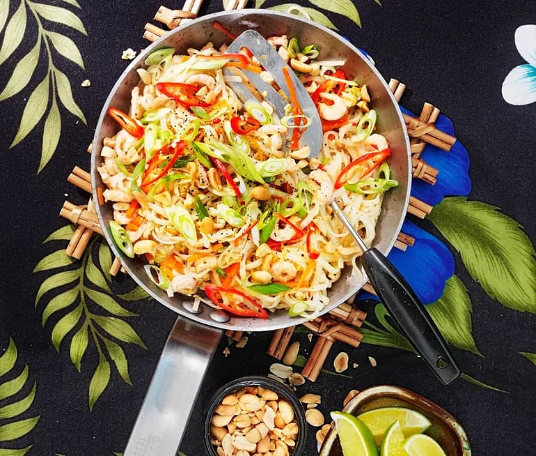 Pad thai på kyckling, biff eller räkor
