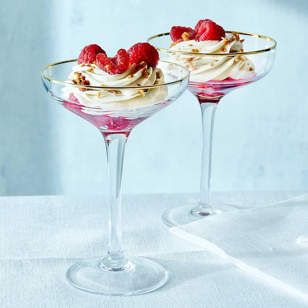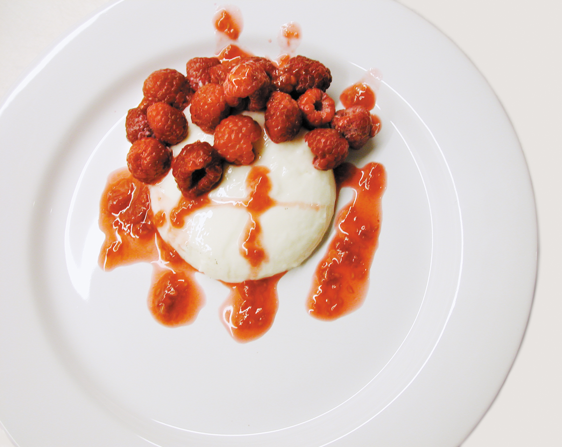 Pannacotta med vit choklad, hallon och italiensk maräng