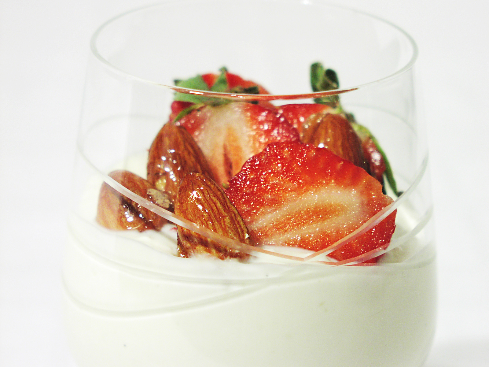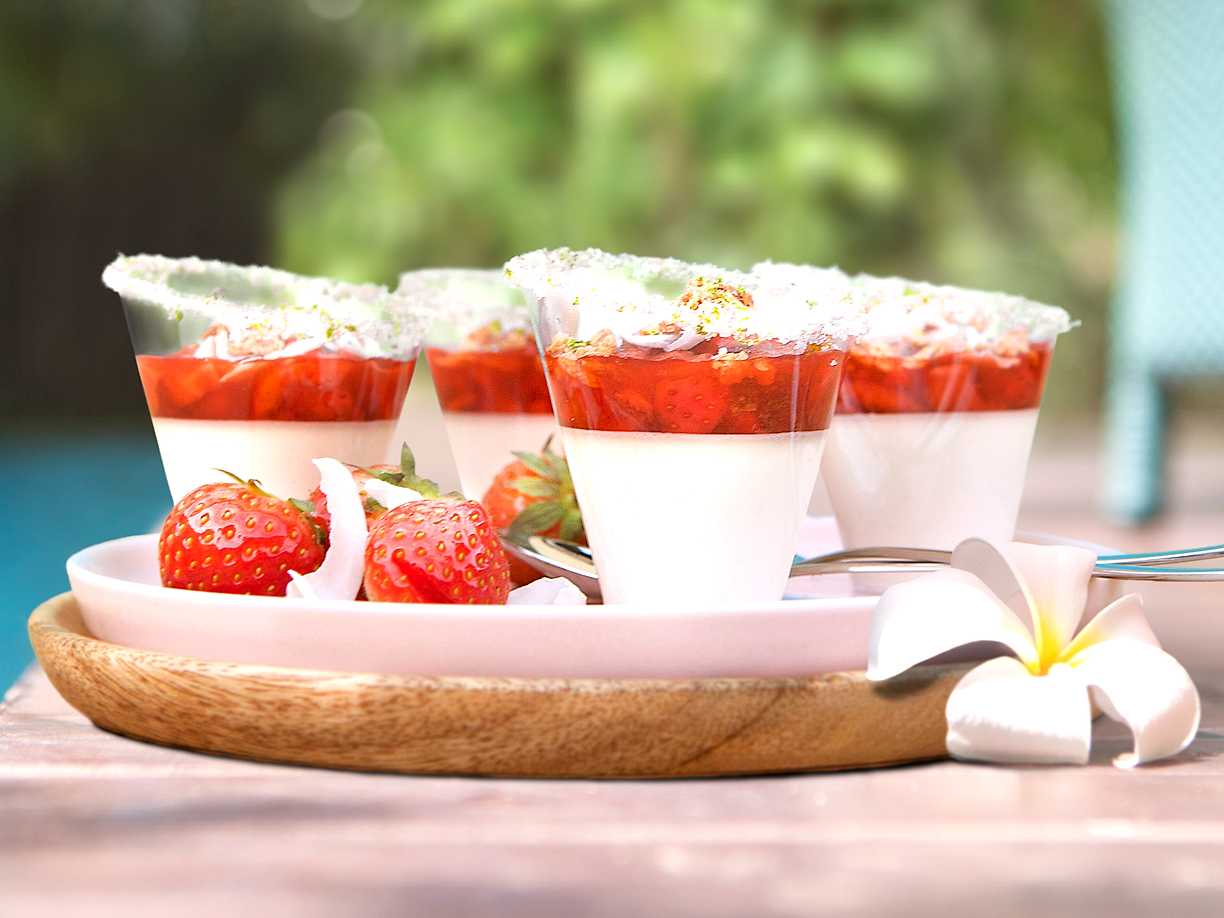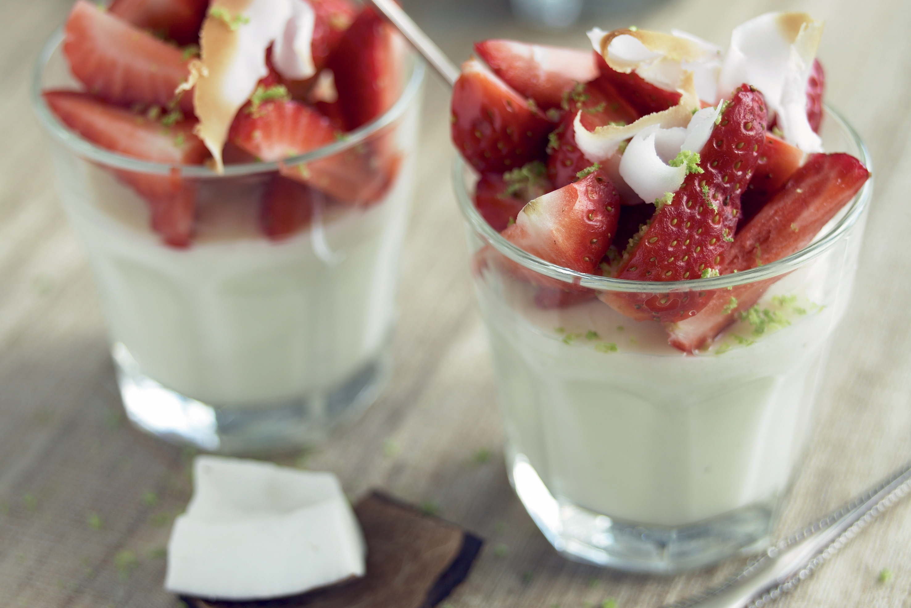 Thailändsk pannacotta med kokos, lime och färska jordgubbar