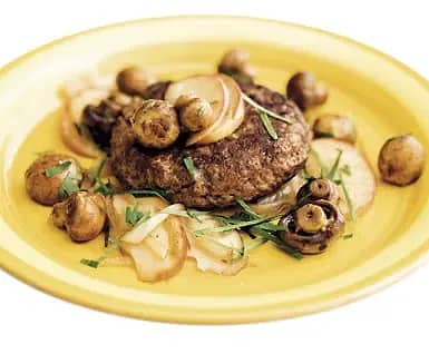 Pannbiff med äpple, lök och champinjoner