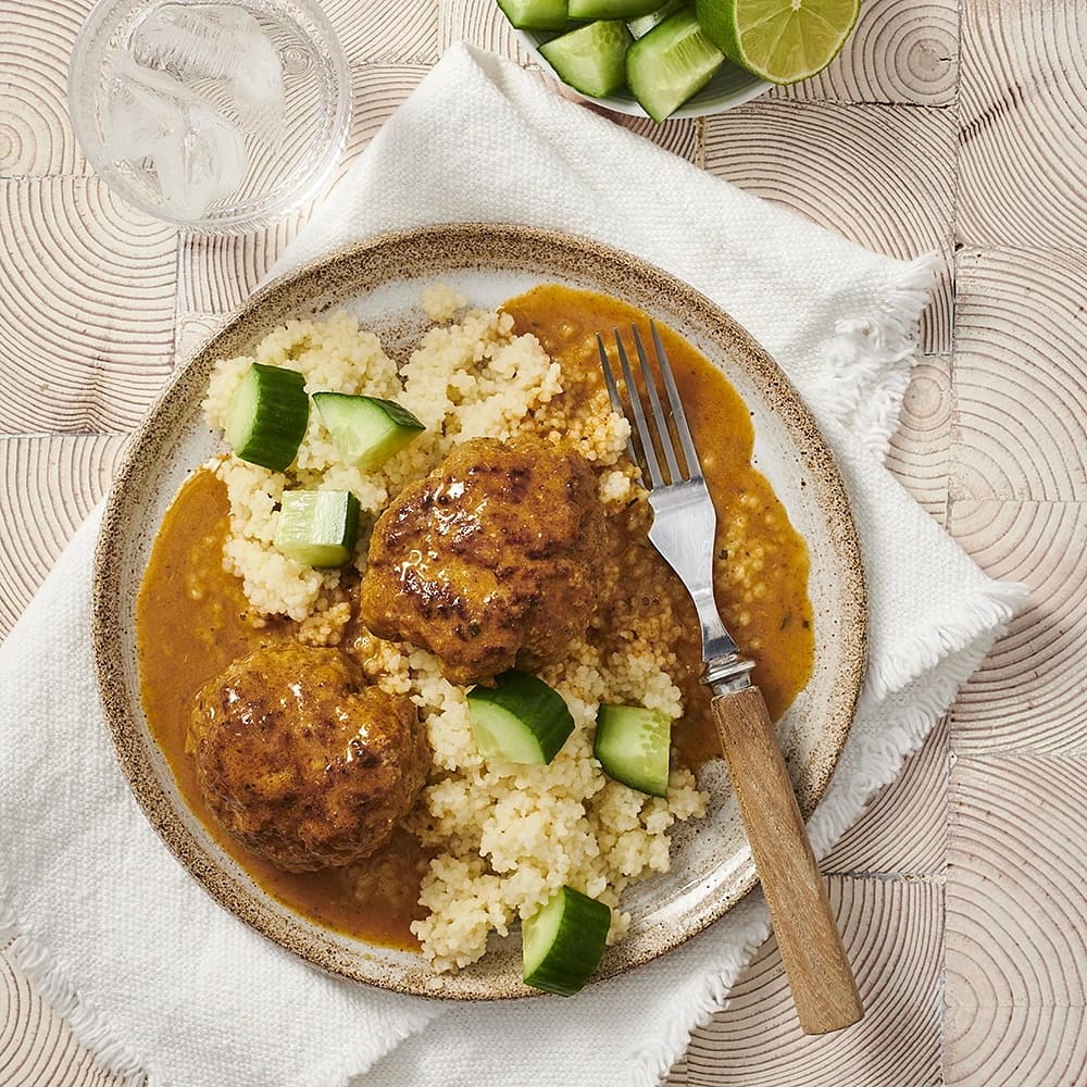 Pannbiff tikka masala med limegurka