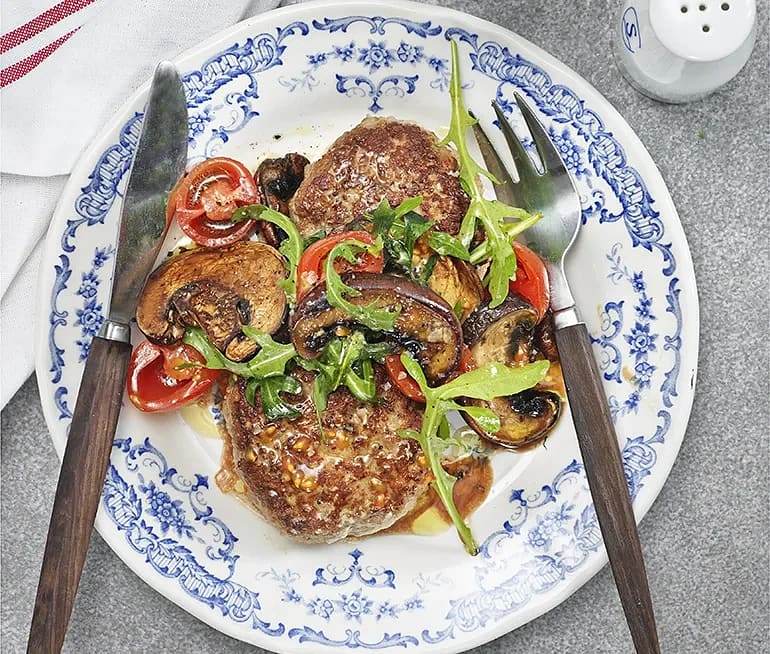 Stora pannbiffar med champinjoner