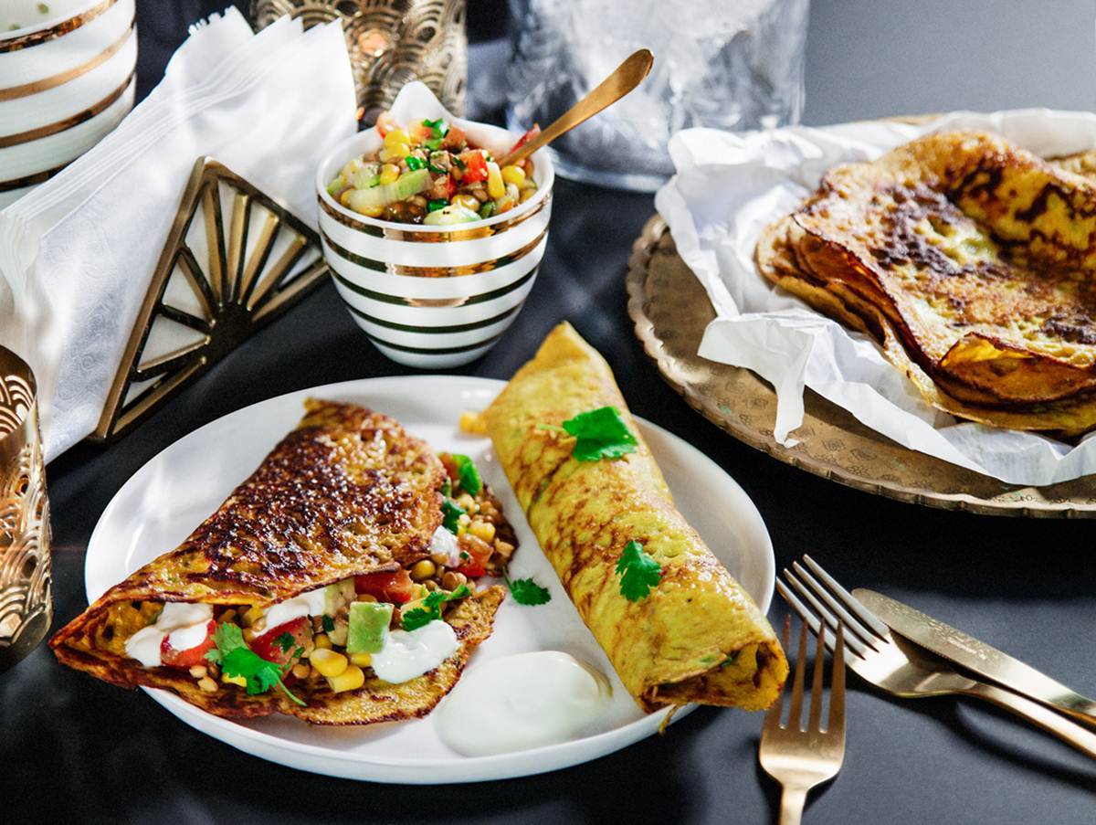 Indiska majspannkakor med grönsakssalsa och sval yoghurt