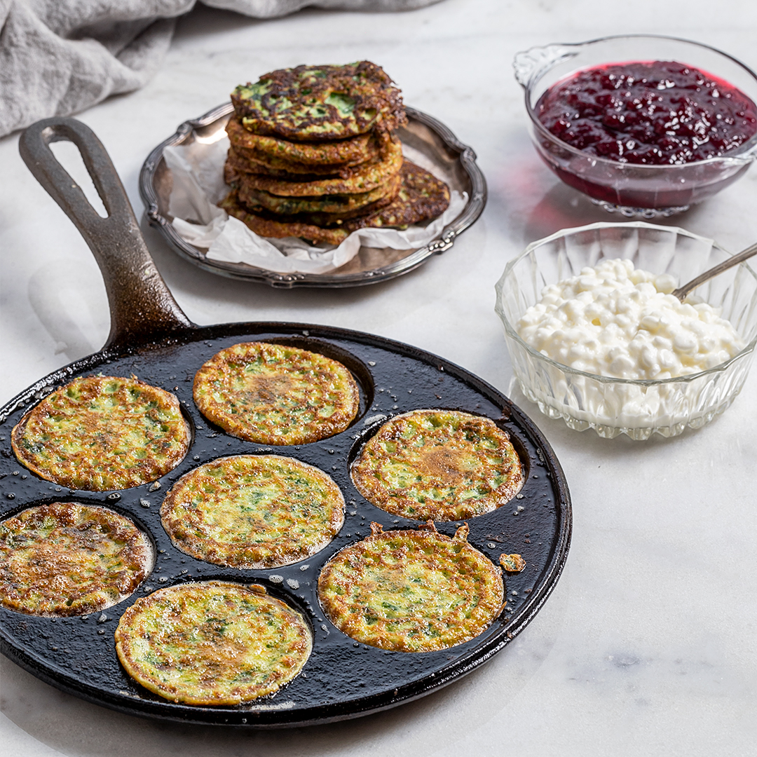 Potatisplättar med cottage cheese och lingon