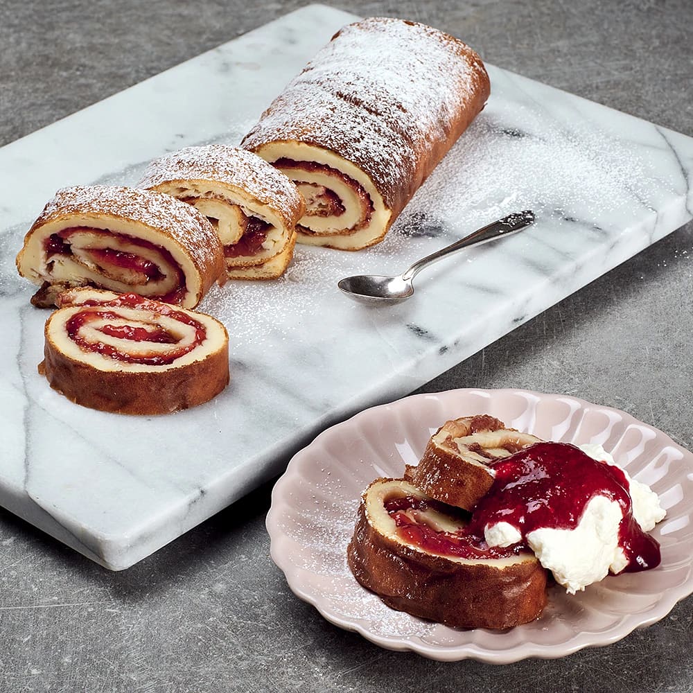 Smördegsvåfflor fyllda med färskost, blåbär och hallon