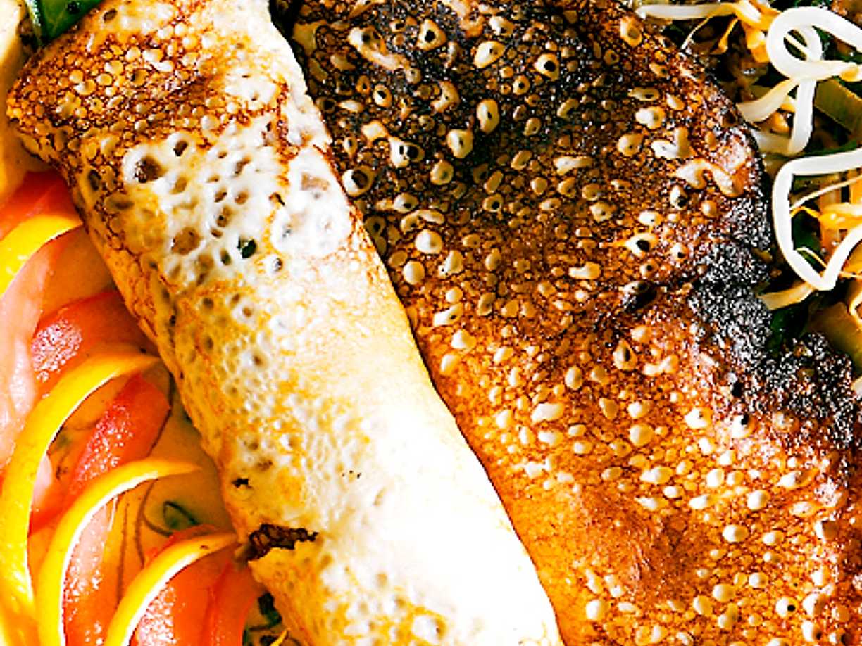 Vietnamesisk pannkaka med örter och räkor