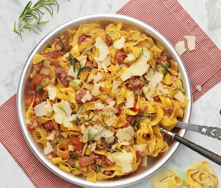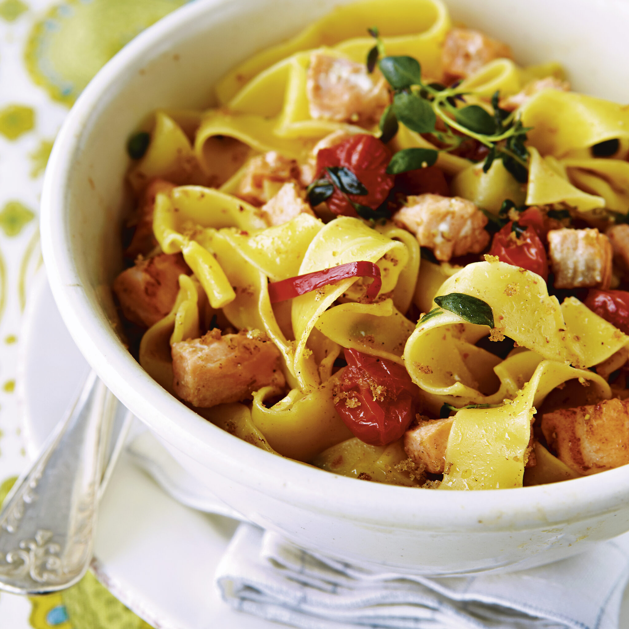 Pasta Pappardelle med kyckling, tomat och grana padano