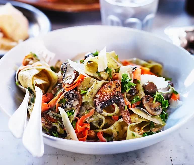 Pasta Pappardelle med svamp, tryffelolja och parmesan
