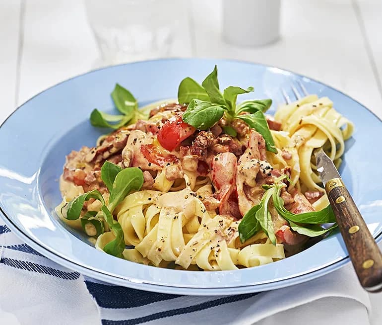 Pasta med paprika- och baconsås