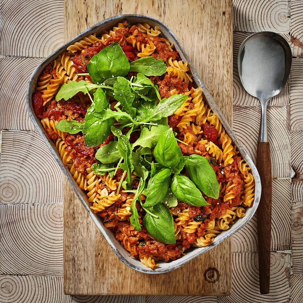 Pastalåda med sojafärs och paprika