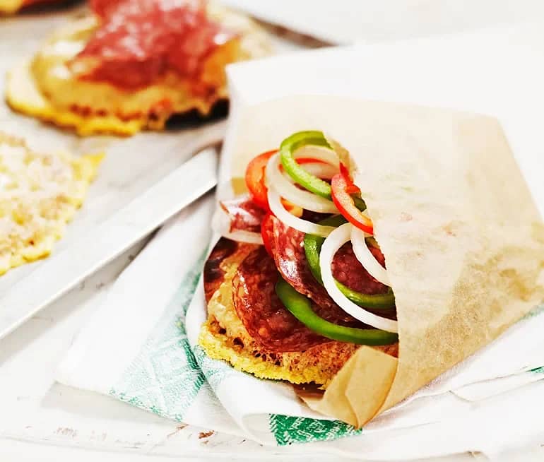 Limpa fylld med mozzarella, paprika och salami