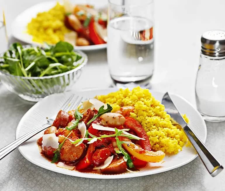 Korvstroganoff med paprika och svamp