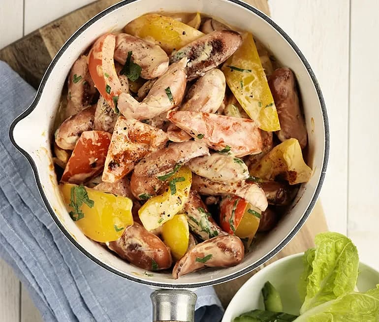 Krämig paprikagryta med prinskorv