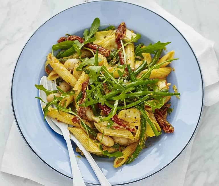 Paprikapasta med bönor och ruccola