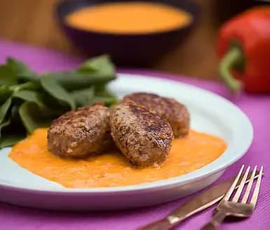 Kalvfärsbullar med krämig paprikasås