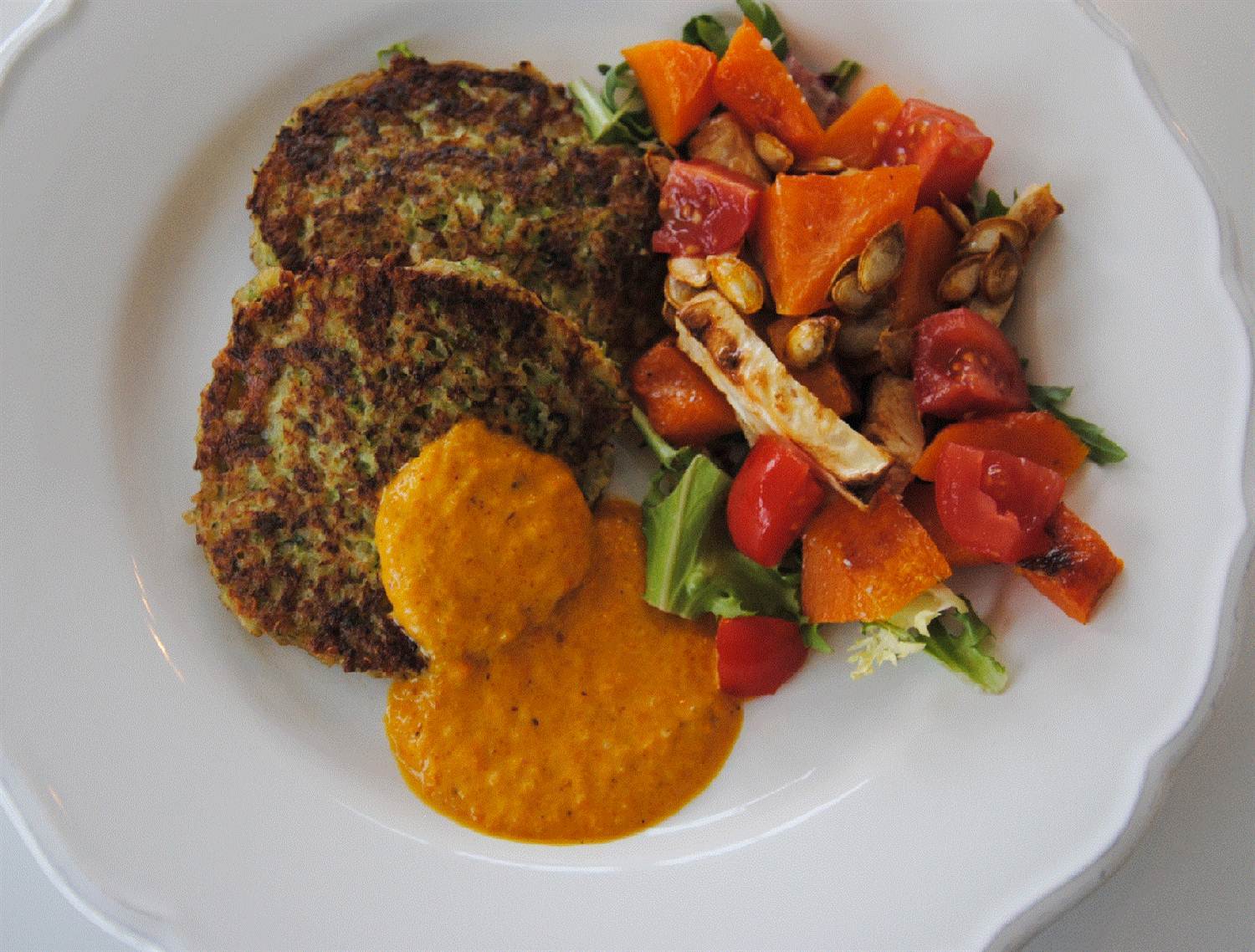 Veggieburger med raw tabbouleh och tomat- och paprikasås