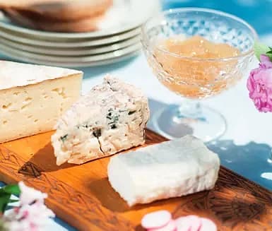 Ädelostbakad kyckling med ugnsstekta päron och rödbetor