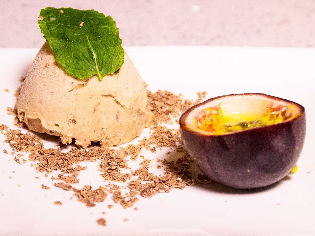 Fryst mangocheesecake med ricotta och passionsfrukt