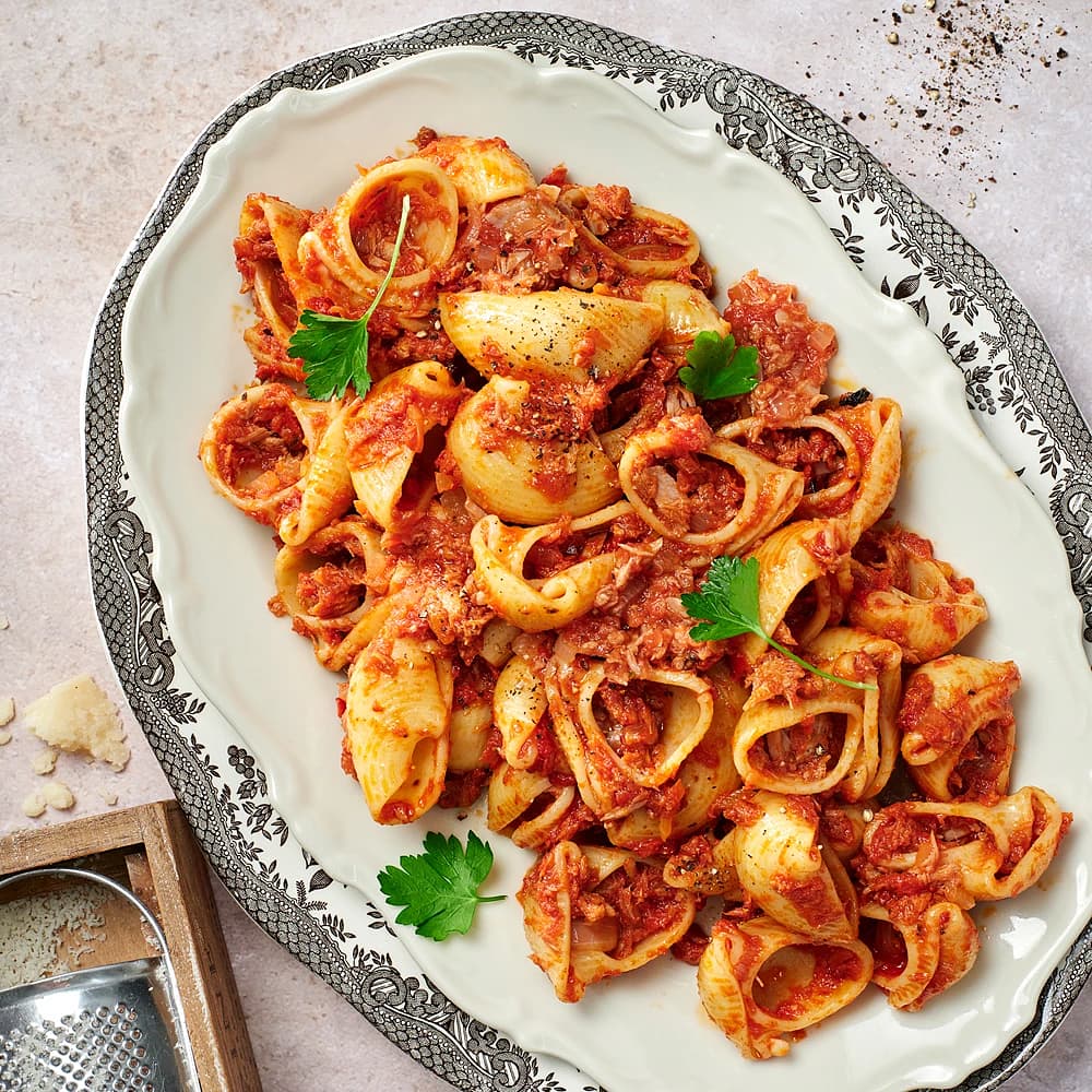 De 5 högst betygsatta recepten med pasta med tonfisksås från Sveriges största receptsajter, rankade efter 676 omdömen.