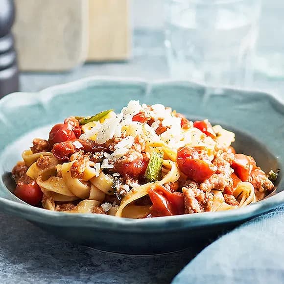 Färsk pasta med hemgjord tomatsås