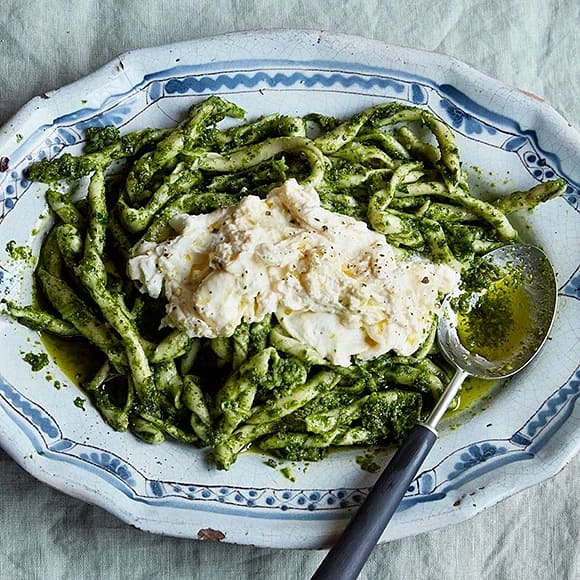 Trofie med pistagepesto och burrata